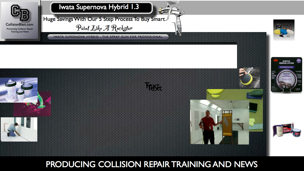 BONUS: The first few people who order the Iwata Supernova Hybrid from this website will receive my e-book, “Collision Blast Basic Auto Body and Paint Training” as a gift for FREE.  This e-book has over 300 pages, access to videos, audios, and a web enhanced course.  This offer will not last long, so be one of the first few.  To redeem e-book send proof of purchase to [email protected]   You can learn more about this e-book at CollisionBlast.com/DSmith